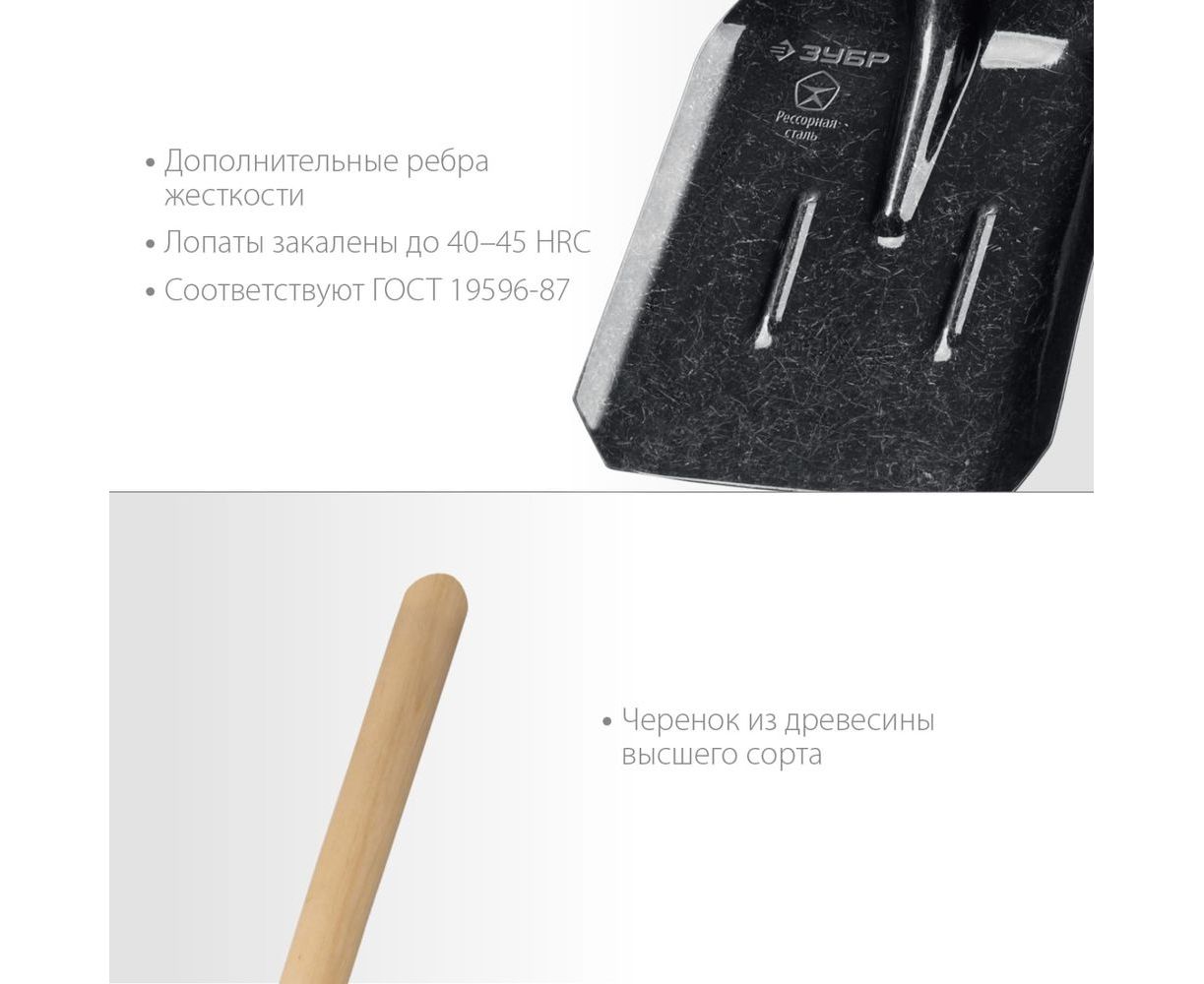 Совковая лопата с ребрами жесткости ЗУБР Профи-5 деревянный черенок, 1450 мм 39457 подходит для проведения садово-огородных и строительных работ.