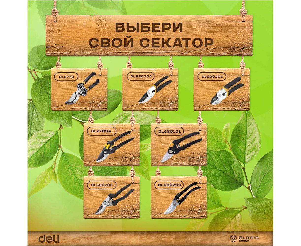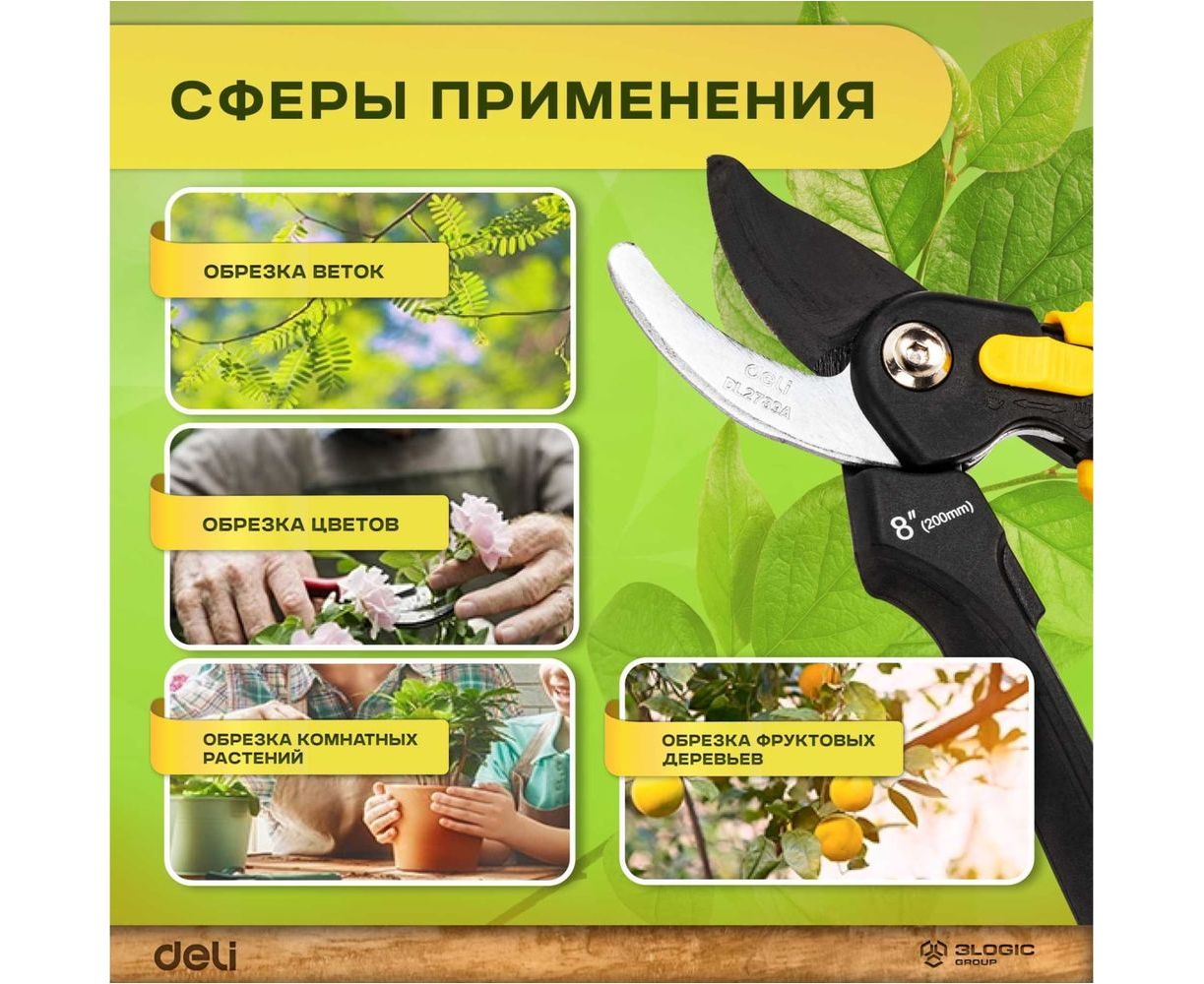 Универсальный садовый секатор DELI DL2789A 200 мм, сталь СК5 98488 используется для обрезки фруктовых деревьев, растений бонсай, садовых растений, цветов и кустов.