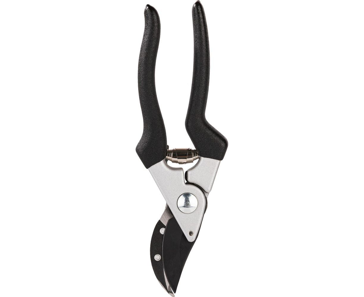 Секатор оснащен эргономичными ручками из ПВХ и возвратной пружиной для удобства использования и снижения усталости рук. Максимальный диаметр сучьев - 20 мм.