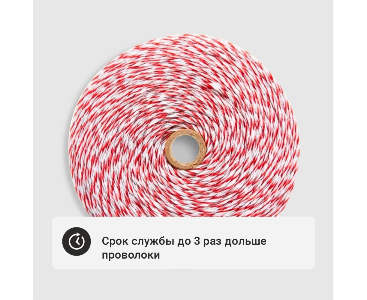 Не подвержен коррозии, не линяет, не выгорает, не ломается и не перетирается, что обеспечивает долговечность и надежность системы электропастуха и простоту создания электроизгороди, а так же её демонтаж и хранение.