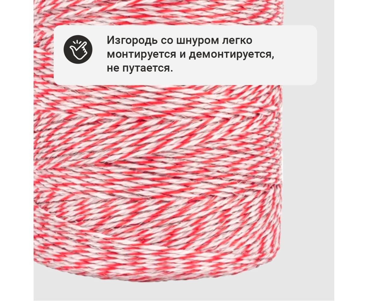 Шнур используется для удержания и охраны животных (КРС, овцы, козы, свиньи, дикие животные), ограждения посевов, пасек в системе электропастуха.