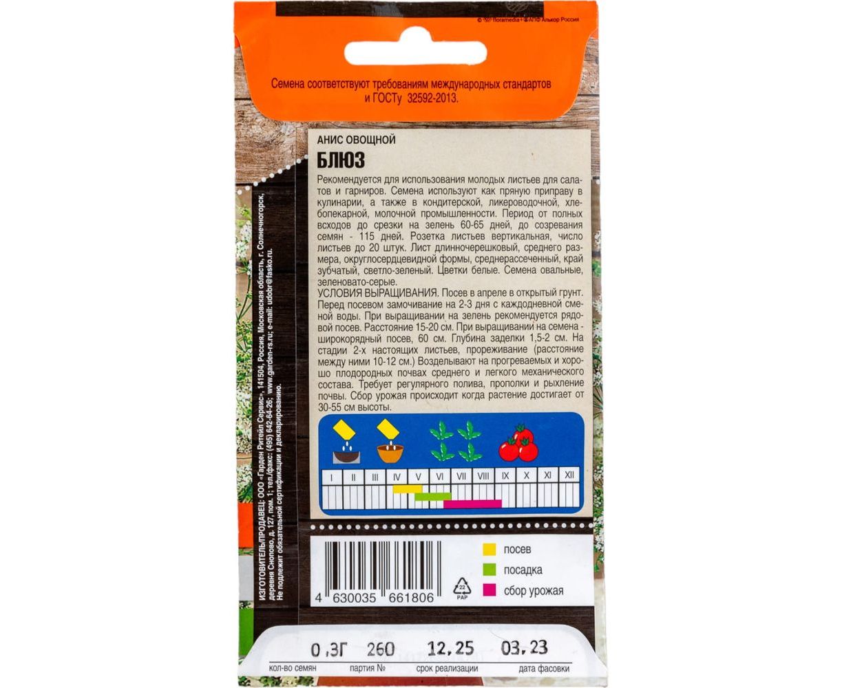 Семена Тимирязевский питомник анис овощной Блюз 0.3 г 4630035661806