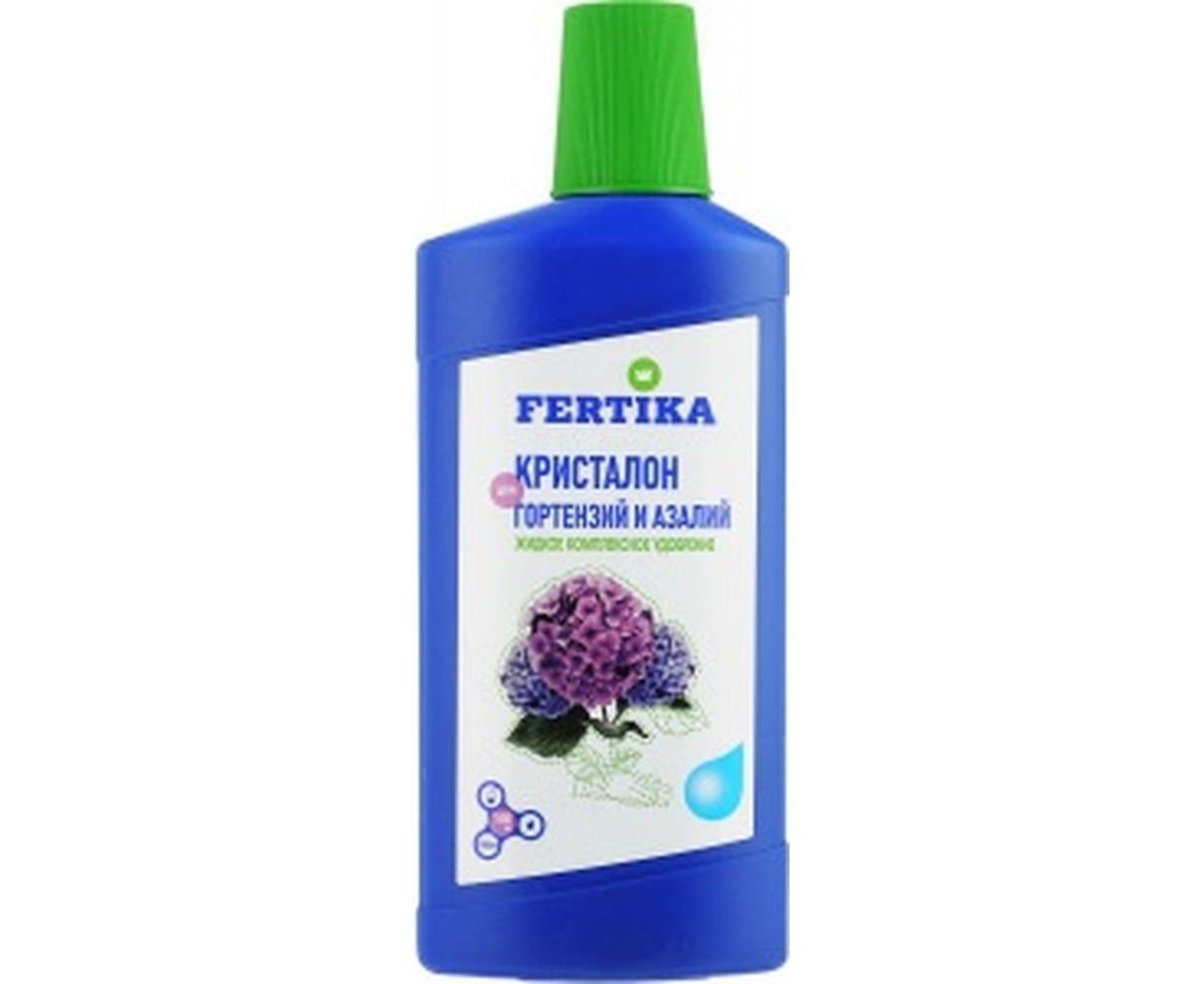 Удобрение Кристалон Fertika 4620005610736 предназначено для гортензий и азалий.Питает растения, увеличивает яркость окраса листьев и способствует росту. Отличается экономичным расходом - 10 мл на один литр воды. Удобрение рекомендовано использовать раз в 10-14 дней в весенне-летнее время и раз в 3 недели в зимний период.
