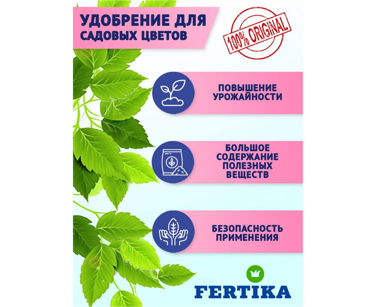 Удобрение Kristalon Fertika 4620005610682 предназначено для однолетних и многолетних садовых цветов, декоративно-лиственных и декоративно-цветущих растений, кустарников.