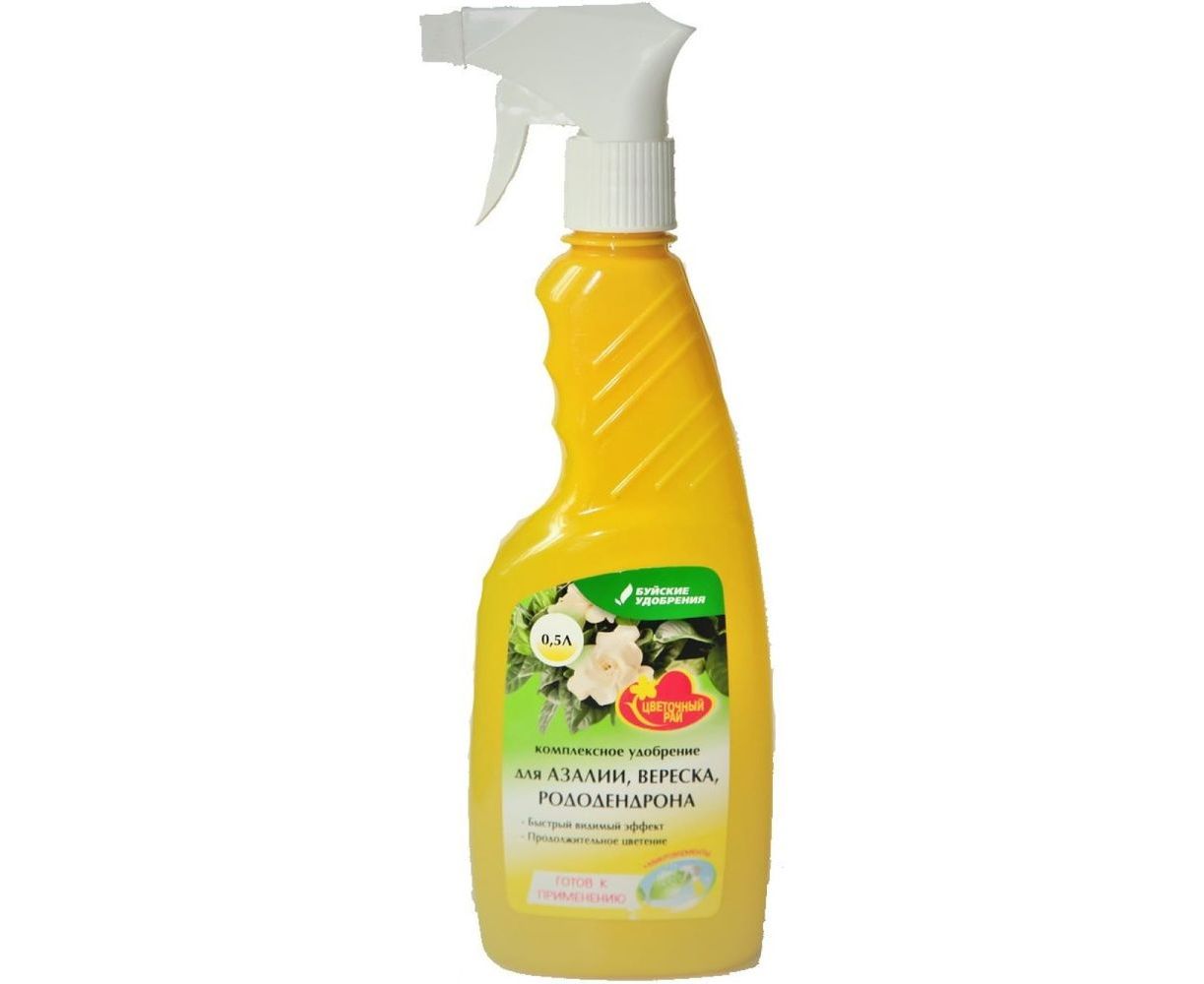 Удобрение-спрей для азалии, вереска и рододендронов Буйские удобрения 500 мл 431157 подходит для питания садовых цветов: азалии, вереска и рододендронов, полностью готово к применению.