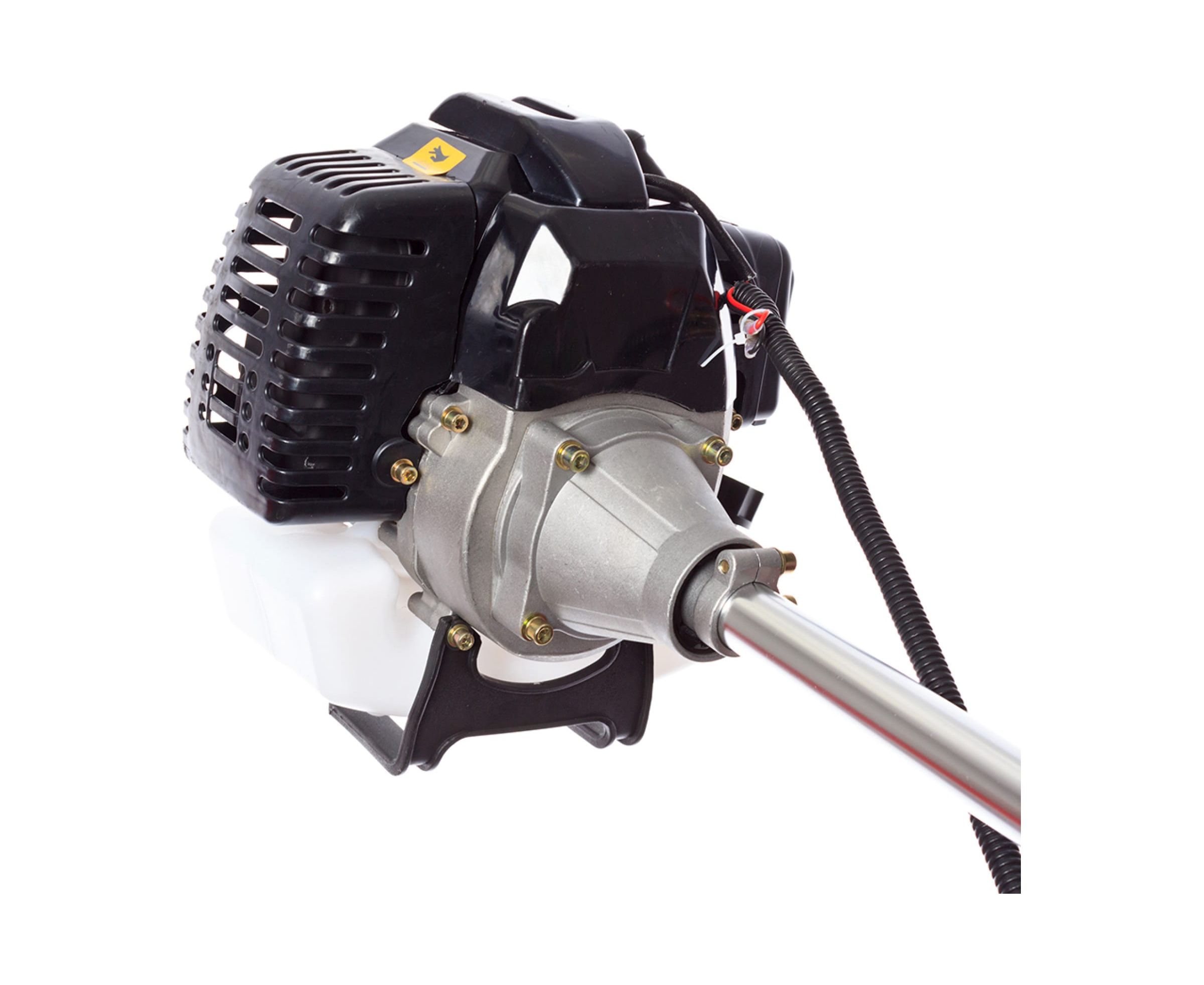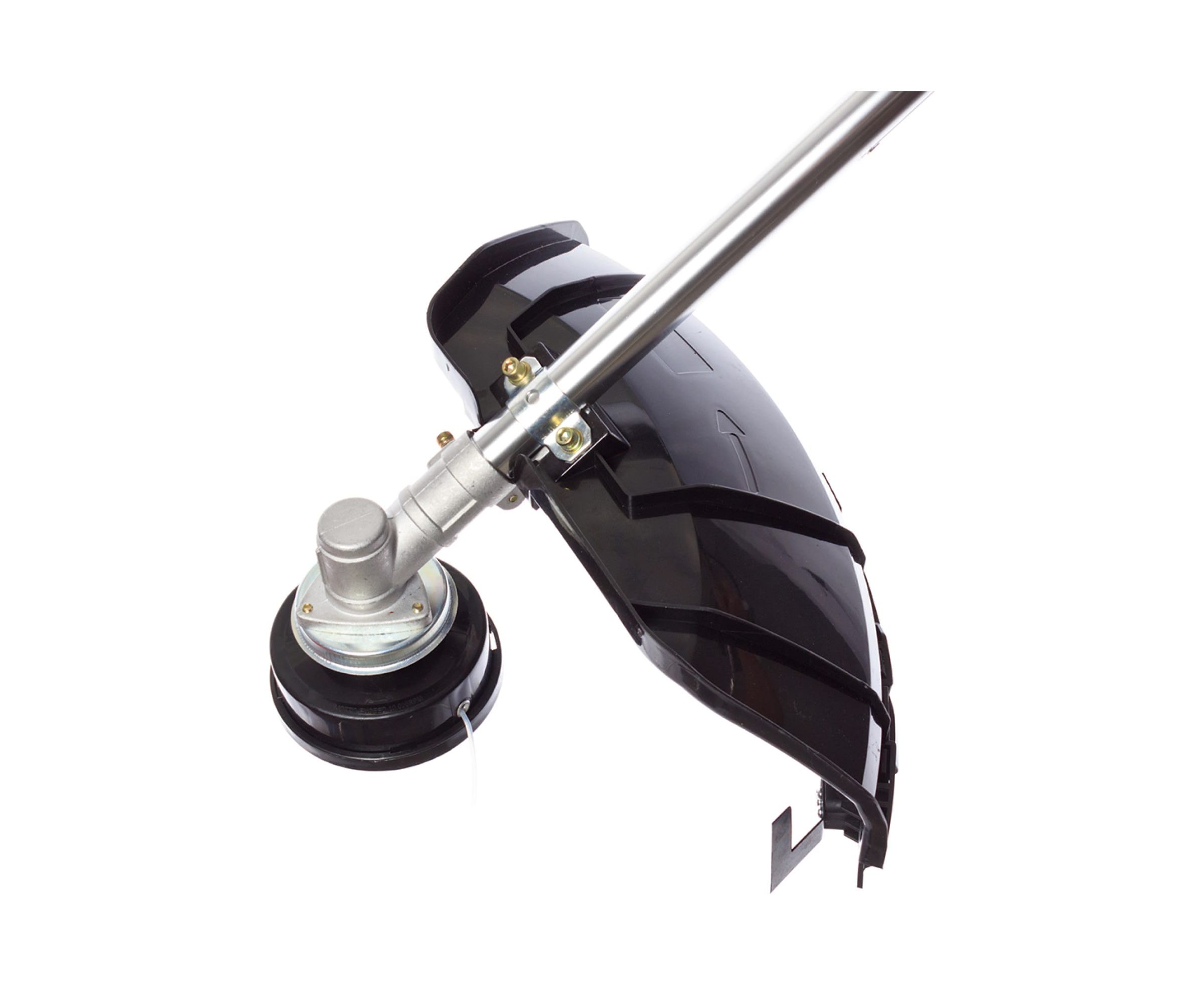 Велосипедная рукоятка обеспечивает удобство удержания агрегата при работе и облегчает управление. Наплечный ремень снижает нагрузку на руки пользователя для продолжительной работы без усталости.Пластиковый кожух защищает пользователя от попадания скошенной травы во время работы.