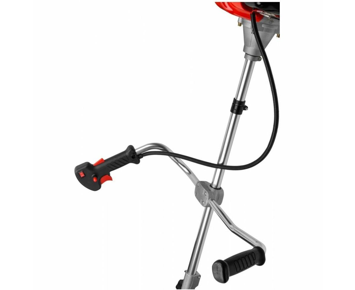 Предусмотрены два режущих элемента - леска и трехлопастной нож для эффективной работы с разной растительностью.
