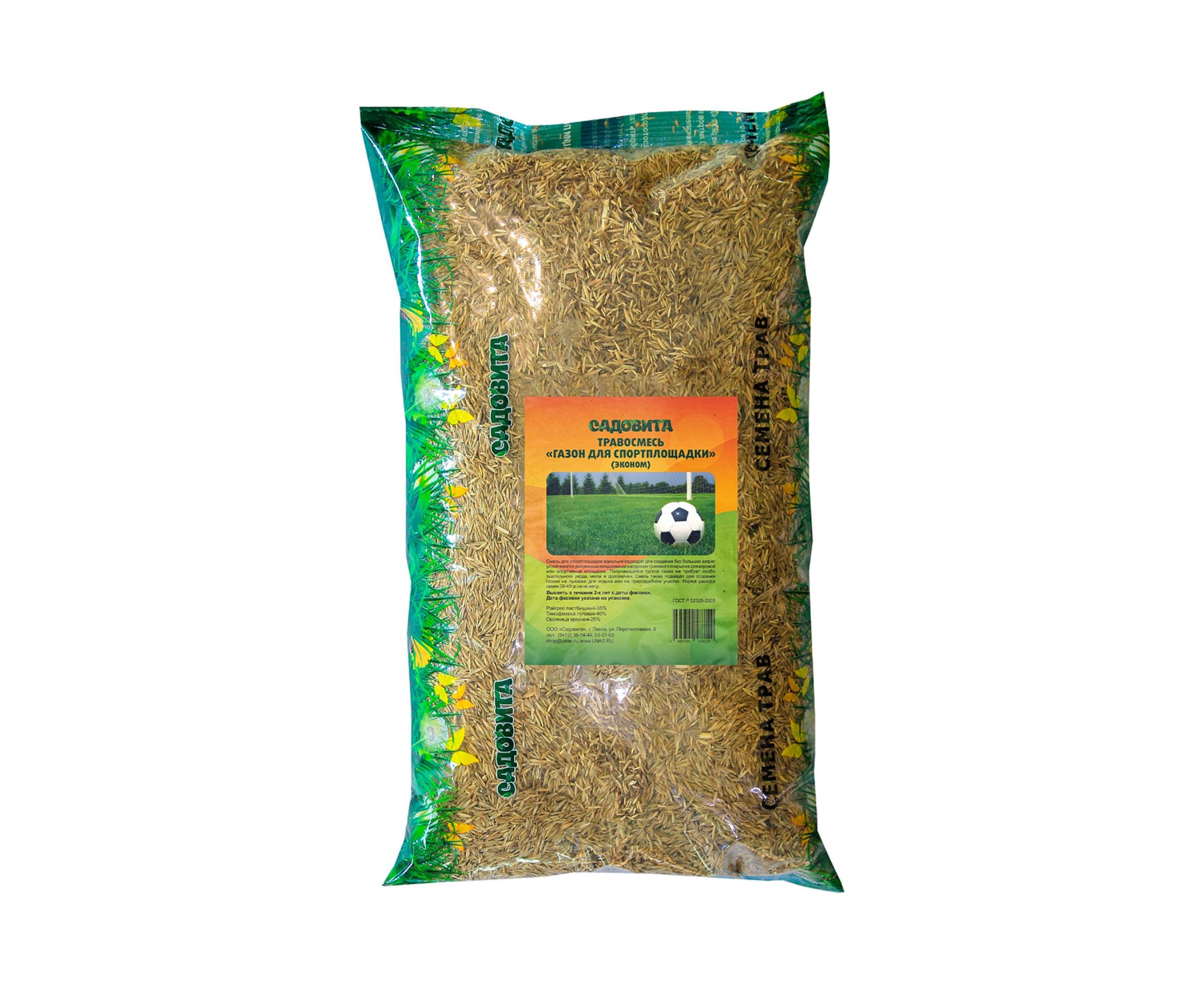Семена САДОВИТА Газон для спортплощадки эконом 1 кг 00091628 – смесь трав, идеально подходящая для создания без больших затрат устойчивого к умеренным ежедневным нагрузкам травяного покрытия для игровой или спортивной площадки.