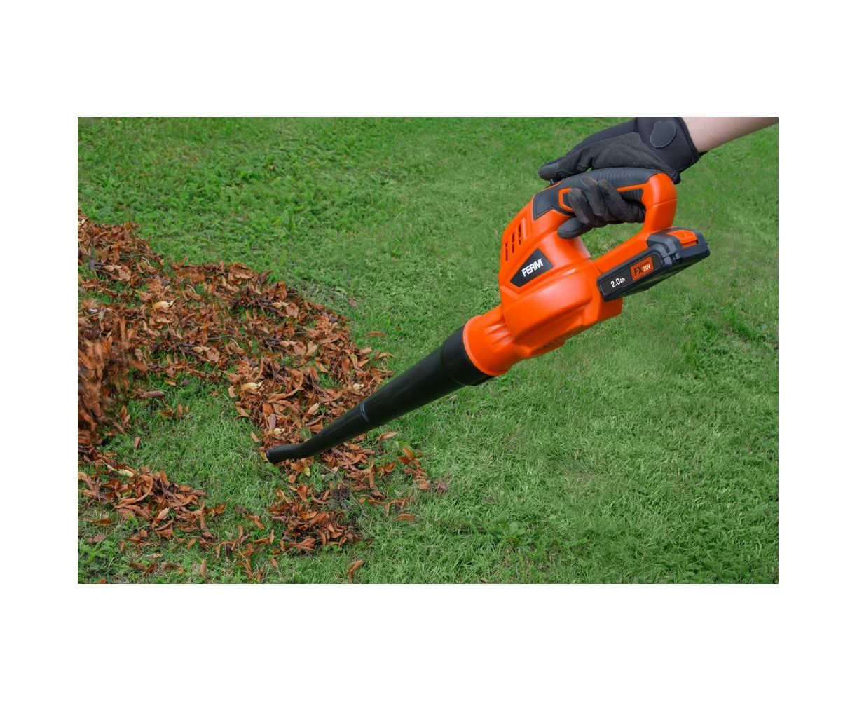 Аккумуляторная воздоходувка FERM LBM1012 используется для выдувания листьев, сора, снега с приусадебного участка.